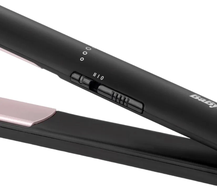 Babyliss ST241E получил довольно большие плавающие пластины с керамическим покрытием. Они быстро достигают нужной температуры и плавно скользят по волосам, не повреждая их. При этом температура равномерно распределяется по поверхности пластин, что позволяет избежать перегрева отдельных прядей.