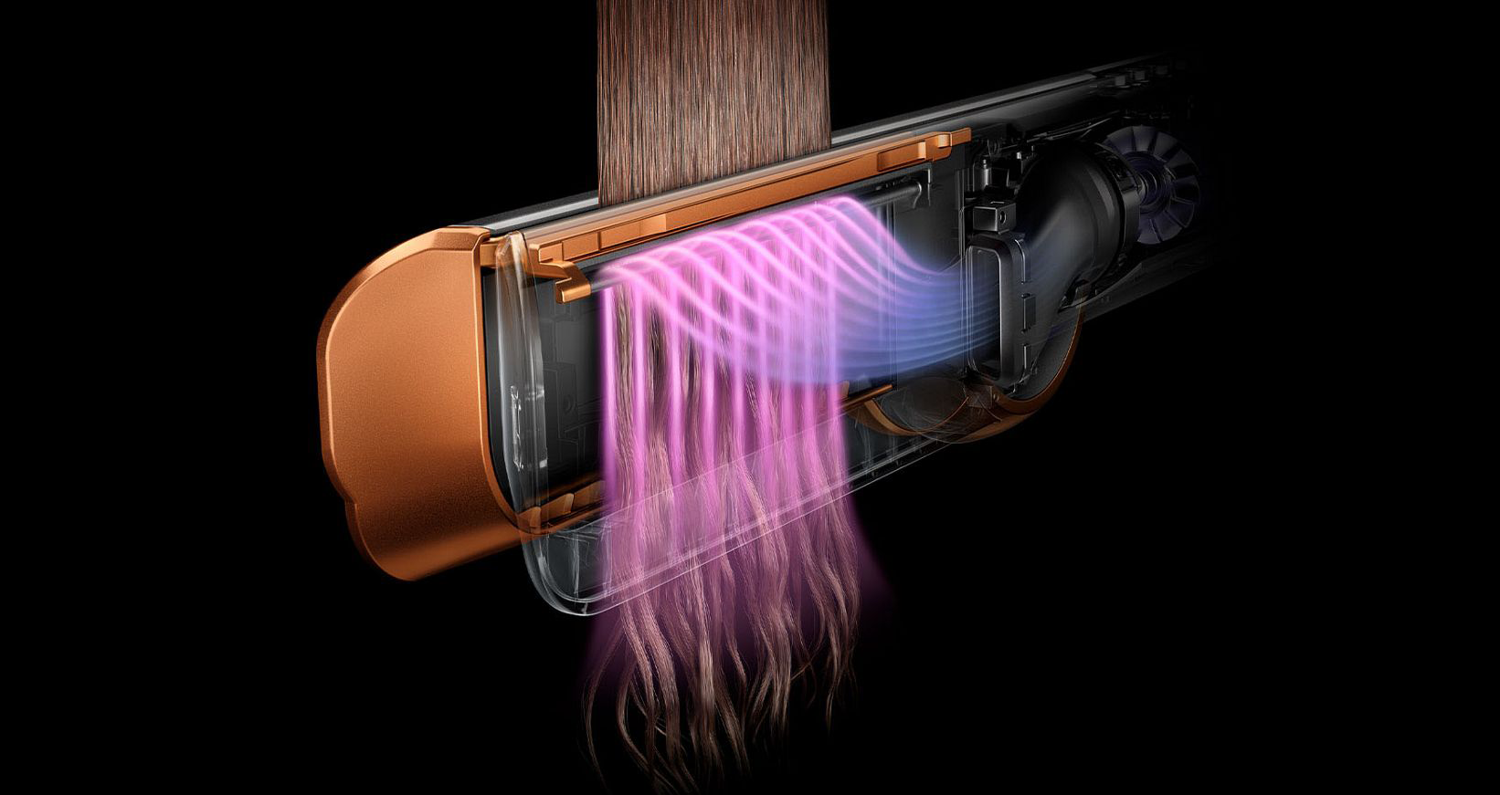 Наша новаторська технологія випрямлення волосся використовує потужний потік повітря під високим тиском для одночасного сушіння та випрямлення вологого волосся. Повітря точно нагрівається та рівномірно розподіляється по пасмам волосся під час укладання — без надмірних температур і гарячих пластин. Без ризику пошкодити волосся.