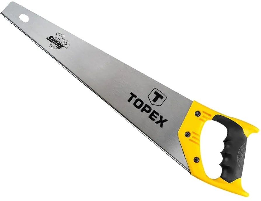 TOPEX представляє ножівку Shark, виготовлену із загартованої сталі, покликану забезпечити ефективну роботу з деревиною. Інструмент оснащений тристороннім заточуванням і загартуванням зубів, що значно знижує опір різання та полегшує розпилювання деревини вздовж волокон. З кроком у цілих 11 зубів на дюйм, ножівка забезпечує високу ефективність у різних завданнях. Ергономічна двокомпонентна ручка ножівки Shark дозволяє точно вести інструмент, а антиковзне покриття запобігає вислизу з руки, забезпечуючи високий комфорт при роботі.