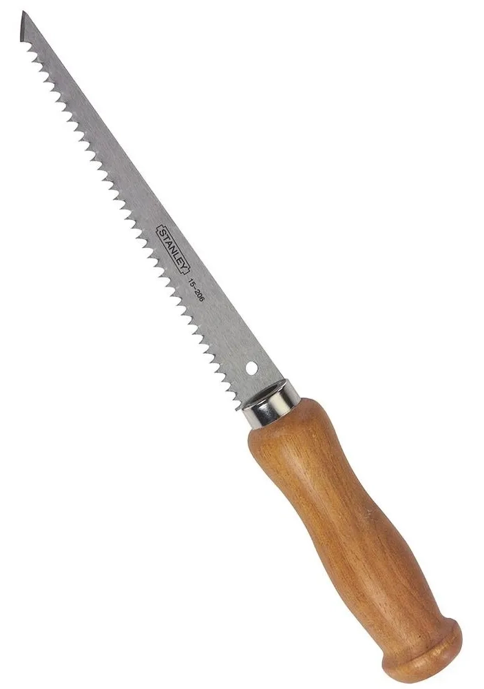 Пориньте у світ безпрецедентної ефективності з ножівкою по гіпсокартону Stanley, оснащеною 152-міліметровим полотном та 6 зубами на дюйм. Її жорстке вузьке полотно не тільки зберігає форму при інтенсивному використанні, але й забезпечує чисте та швидке пиляння, суттєво заощаджуючи ваш час. Загострений передній край полотна гарантує легкість прокладання шляху через гіпсокартон, надаючи точність і контроль. Спеціально розроблена для створення отворів у гіпсокартоні, ця ножівка поєднує надійність марки Stanley, довгий термін служби та комфортне використання в одному інструменті.