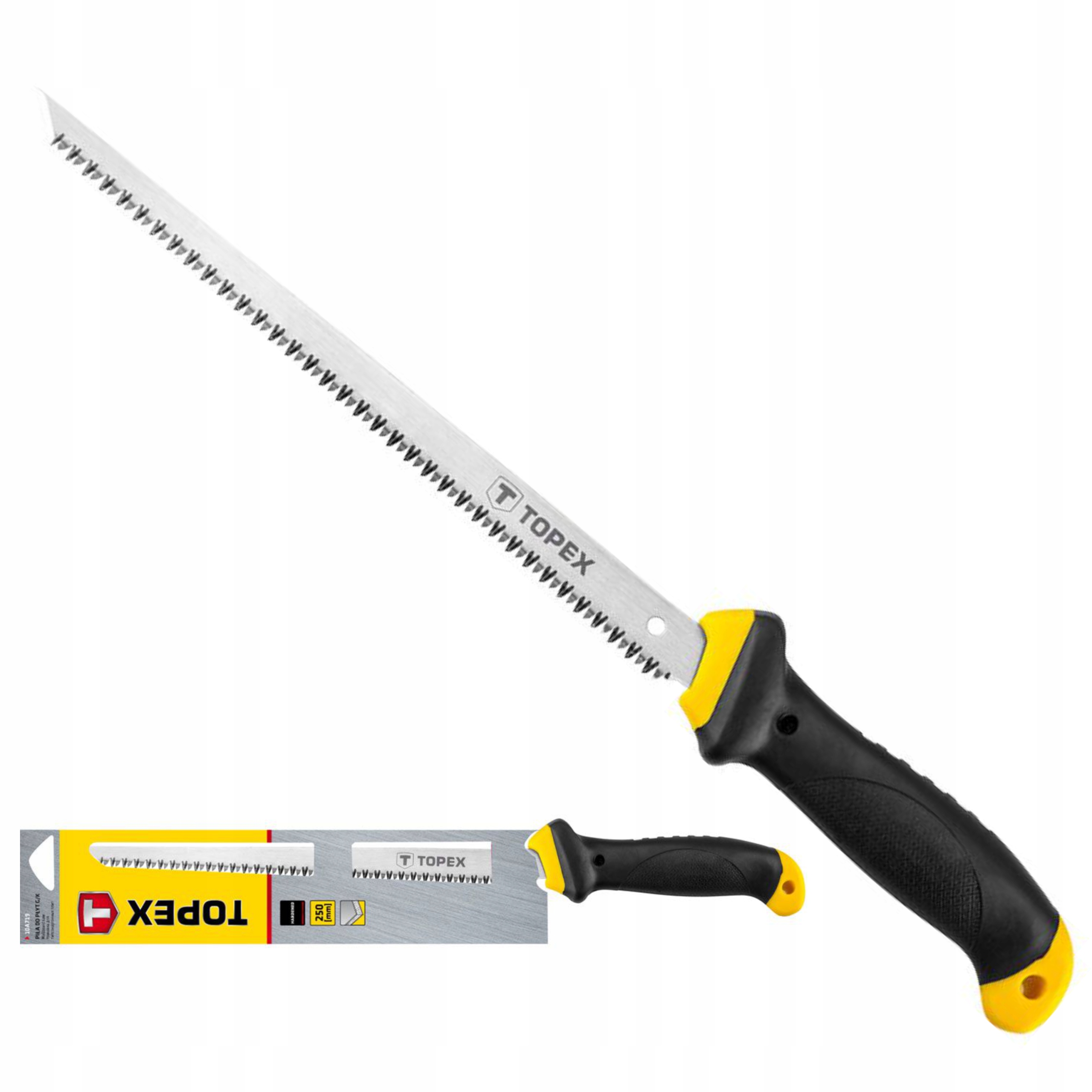 Ергономічна пластмасова ручка ножівки забезпечує точне ведення інструменту, а антиковзне покриття підтримує чудове захоплення, забезпечуючи високий рівень комфорту під час роботи. Бренд TOPEX, орієнтований на домашніх майстрів, пропонує інноваційні рішення, що поєднують у собі якість та ефективність, роблячи інструмент придатним для різноманітних будівельних завдань. Ножівка TOPEX стане надійним партнером у інструментарії для майстерень з гіпсокартоном.
