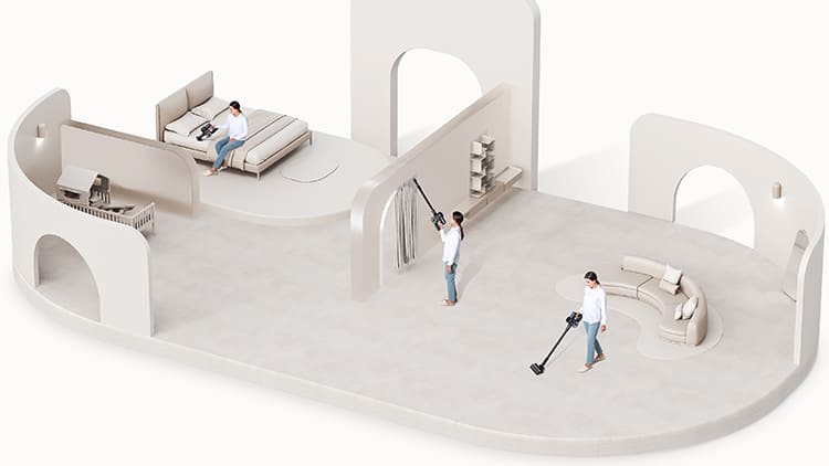 Потужне всмоктування та надлегкий дизайн дозволяє прибирати високі та низькі місця за допомогою лише однієї насадки. Продовжуйте прибирання без перерв разом з Dreame R10 PRO.