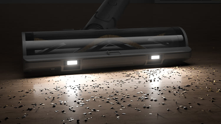 За допомогою яскравих світлодіодів ви можете зберегти чистоту навіть у темних куточках будинку. Подвійні передні світлодіоди висвітлюють всю поверхню, що чистить, роблячи пил, сміття і волосся видимими під час прибирання.