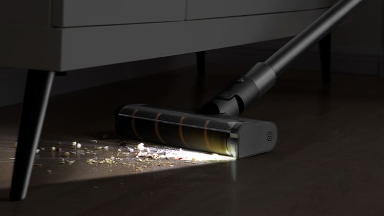 В акумуляторному пилососі Dreame R10 PRO яскравий бічний світлодіод виявляє пил, який міг бути непоміченим і значно спрощує прибирання в темних кутах.Прибирання у найделікатніших кутах