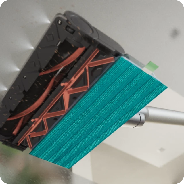 Насадка прилягає на відстані до 3 мм до стін і плінтусів, захоплюючи частинки бруду, що важко видалити.
