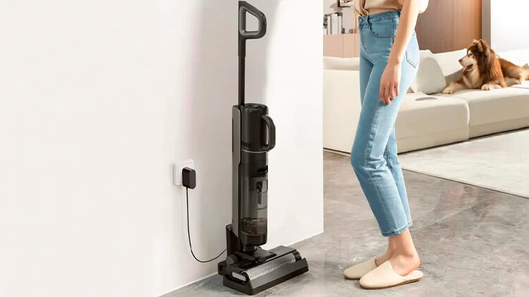 У комплекті з пилососом поставляється зарядна база, яка виконує кілька функцій. Тут ви зможете заряджати гаджет, запускати самоочищення щітки та впорядковано зберігати всі насадки. Так аксесуари завжди будуть у вас під рукою, а сам прилад займатиме мінімум місця.