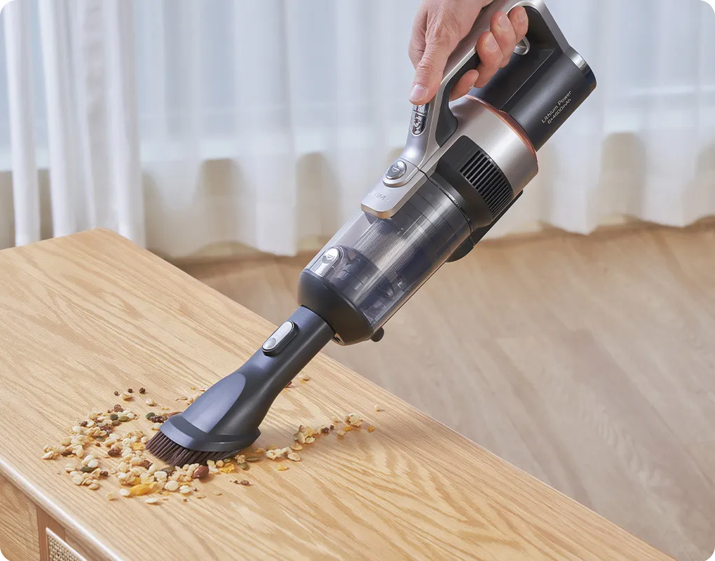 Отримайте більше гнучкості для очищення різних поверхонь за допомогою ручного блоку, який легко від'єднується від пилососа. Використовуйте його для очищення складних ділянок, включаючи важкодоступні зони, вузькі щілини та м'яку оббивку на меблях. Прибирайте всі поверхні від підлоги до стелі, насолоджуючись швидким і якісним очищенням без клубків пилу.