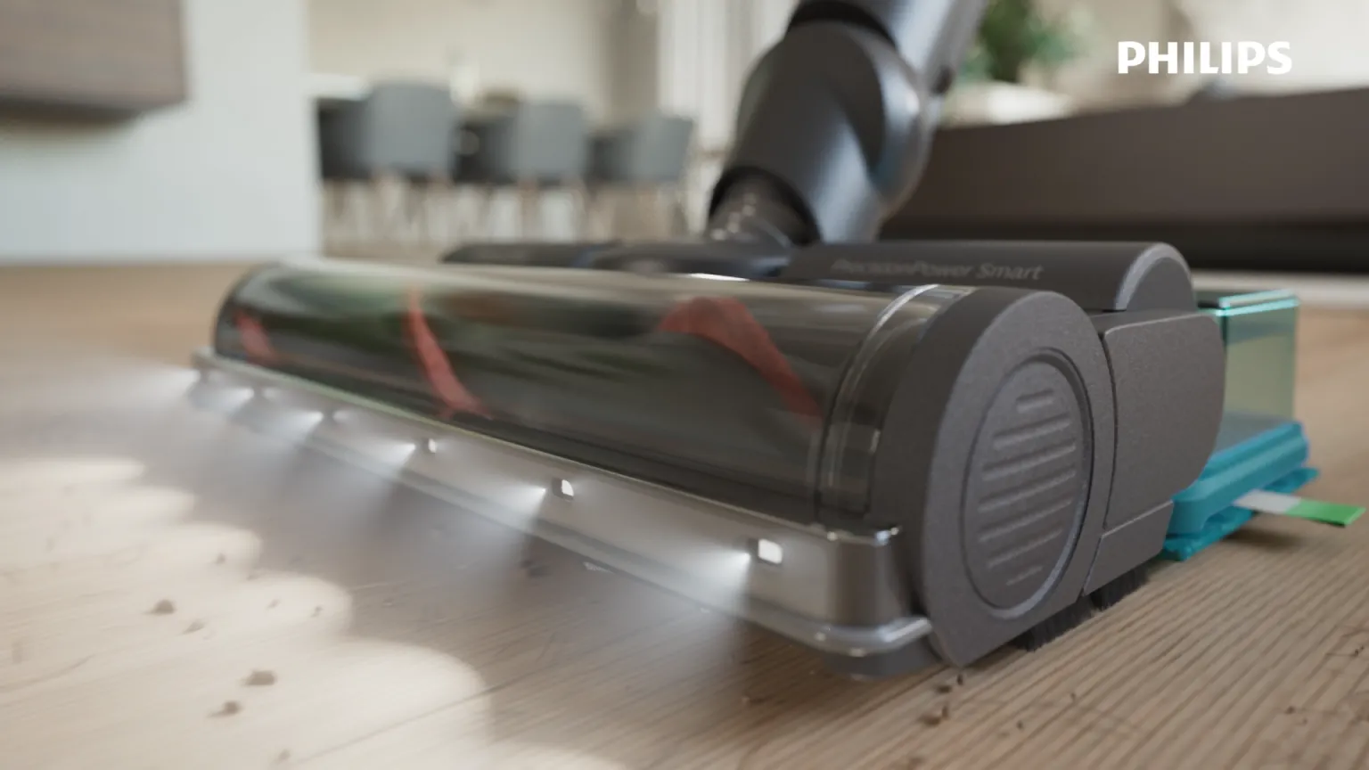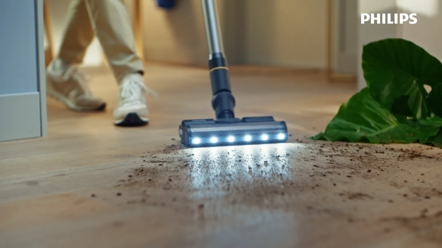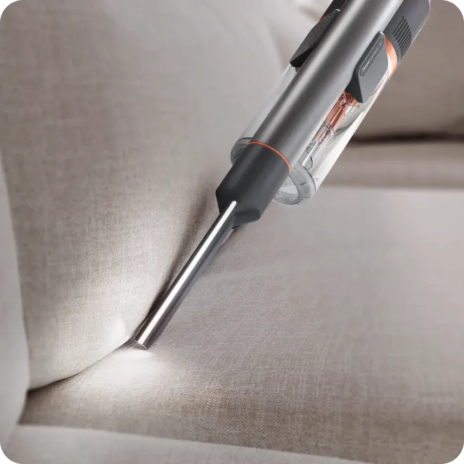 Завдяки потужній LED підсвітці бачить прихований пил та збирає до 99.9%4 пилу з будь-якої підлоги з надзвичайною акуратністю біля та під меблями.