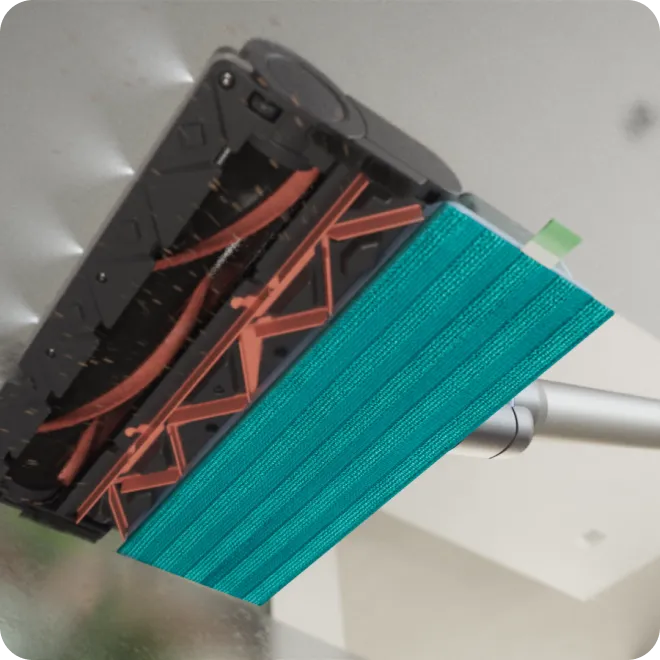 Забезпечує виняткову точність очищення до 0 мм поблизу кутів і плінтусів.