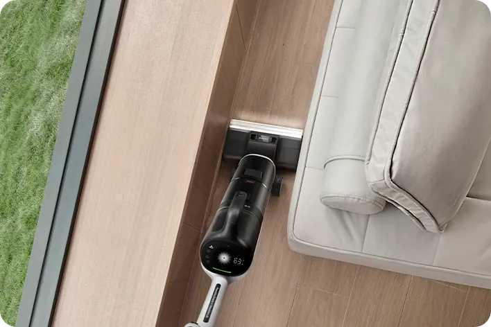 Dreame H14 DUAL підходить до збирання по-дорослому. Його щітка позбавлена рамок, вона дістає впритул до кутів і прибирає кімнату по периметру. Там, де безсили інші пилососи, Dreame збирає сміття і не залишає брудних смуг.