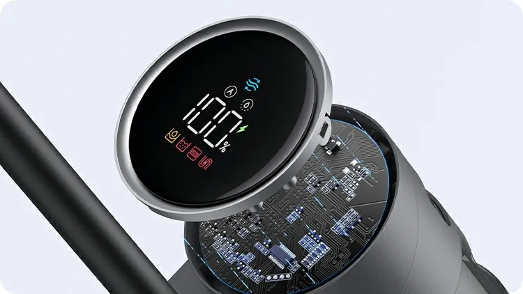 Світлодіодний дисплей призначений для зручного вибору потужності, відображення статусу пилососа. Крім того, на екран виводиться інформація про стан заряду акумулятора в режимі реального часу. Колірна індикація підкаже вам про рівень забруднення поточної ділянки: зелена - слабко, жовта - середньо, червона - сильні забруднення покриття.