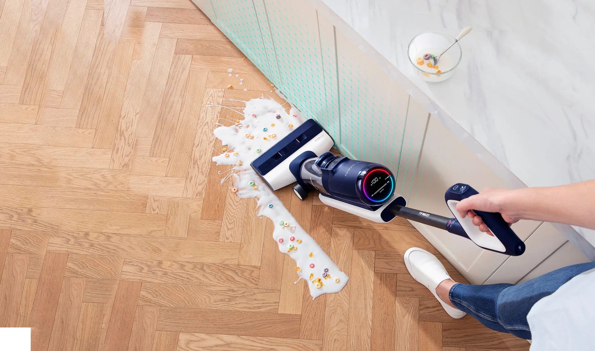 Дивовижна потужність та ефективність вражають навіть найвибагливіших користувачів. Модель Extreme спеціально розроблена для очищення великих площ. Одного циклу зарядки вистачить на площу до 130 квадратних метрів. Завдяки технології iLoop пристрій автоматично контролює весь процес: кількість води, швидкість обертання щітки, потужність. Також усі ці параметри можна вказати за допомогою мобільного додатка від Tineco у смартфоні або голосом.