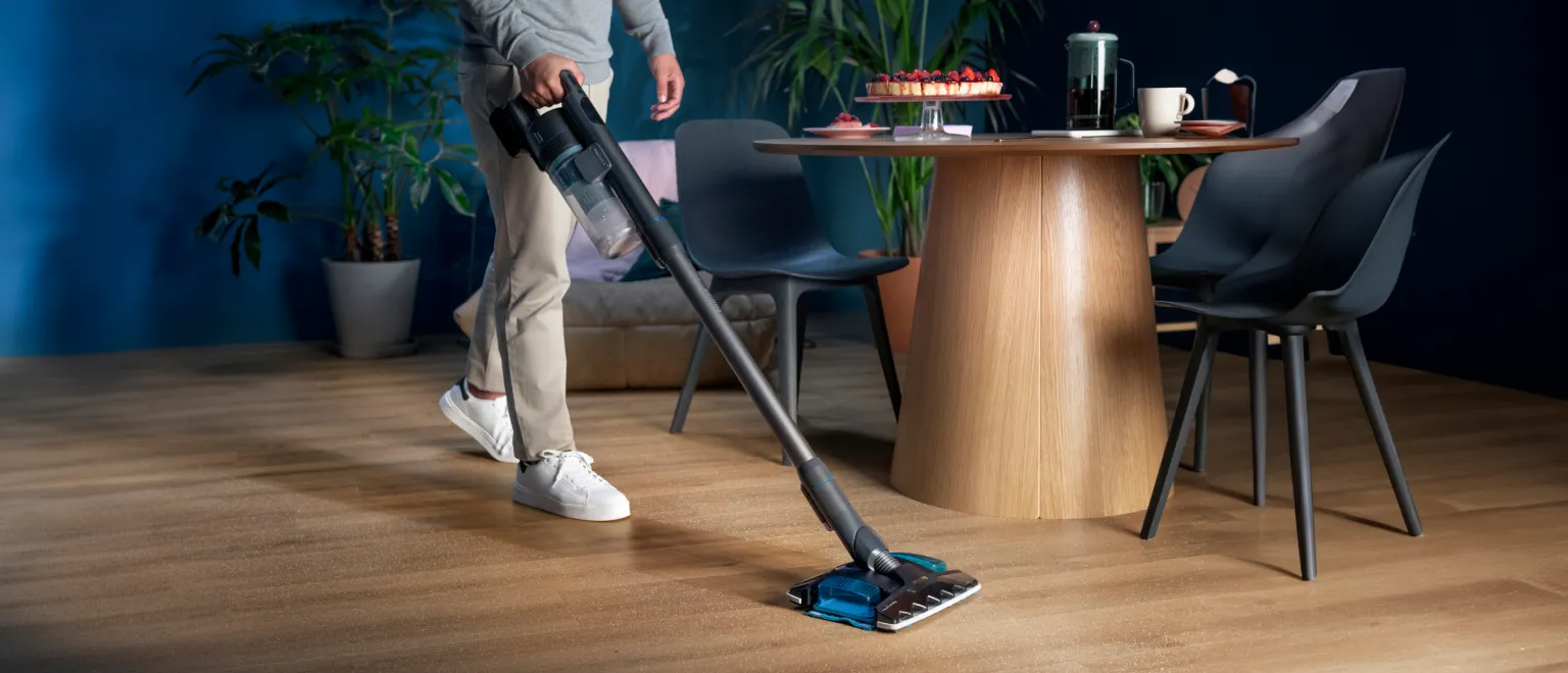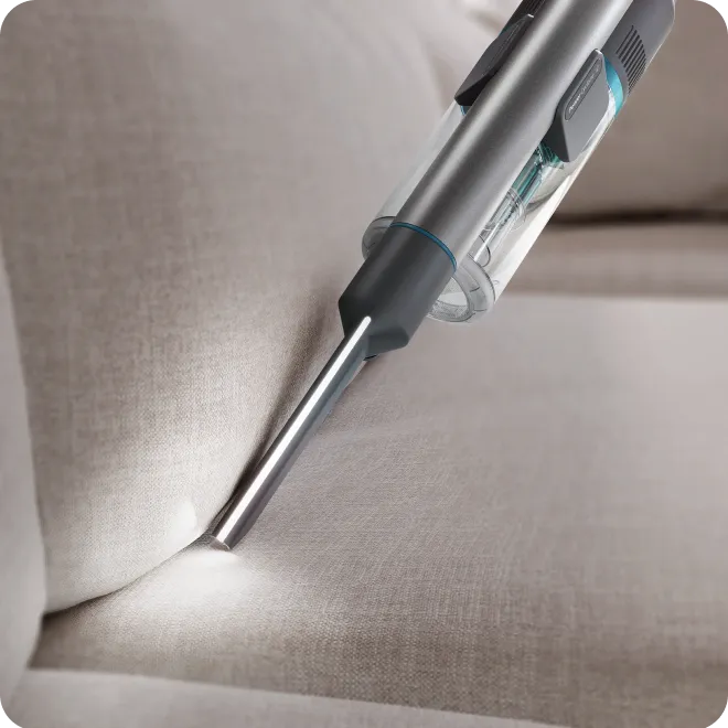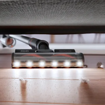 Завдяки потужній LED підсвітці бачить прихований пил та збирає до 99.9%4 пилу з будь-якої підлоги з надзвичайною акуратністю біля та під меблями.