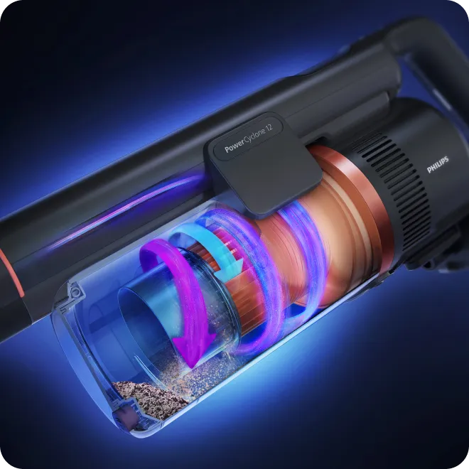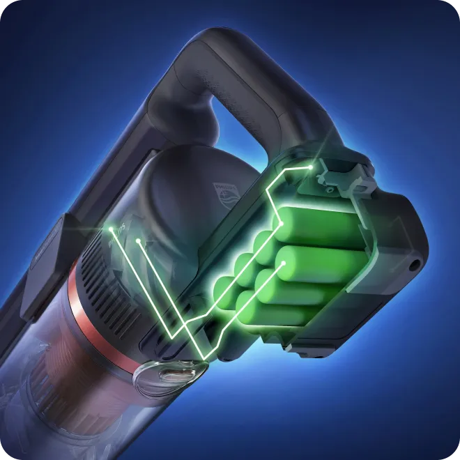 Розумна конструкція створює надшвидкий потік повітря, що забезпечує максимальне всмоктування пилу з мінімальним використанням заряду акумулятора2.