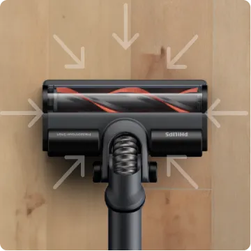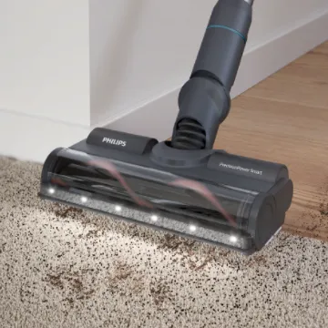 Автоматично регулює потік повітря і швидкість обертання щітки для оптимальної роботи на твердій підлозі та з килимом.