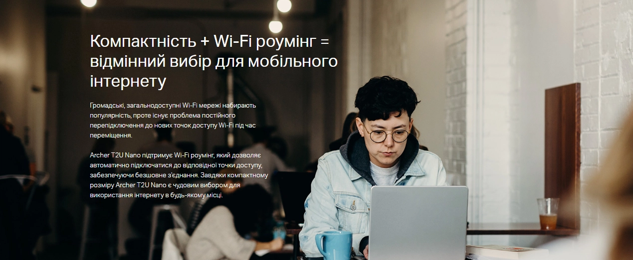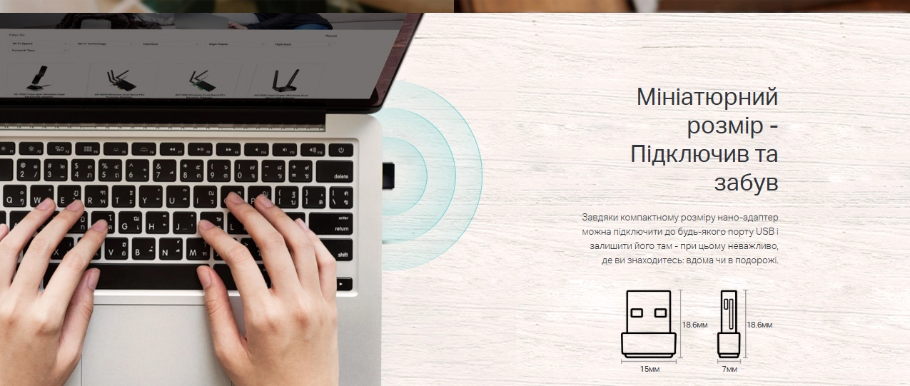 Archer T2U Nano має дуже компактний розмір, завдяки чому його легко підключити і залишити на комп’ютері без зайвого втручання. Малий форм-фактор робить пристрій майже непомітним, що зручно для ноутбуків та настільних ПК, забезпечуючи при цьому надійне з’єднання.