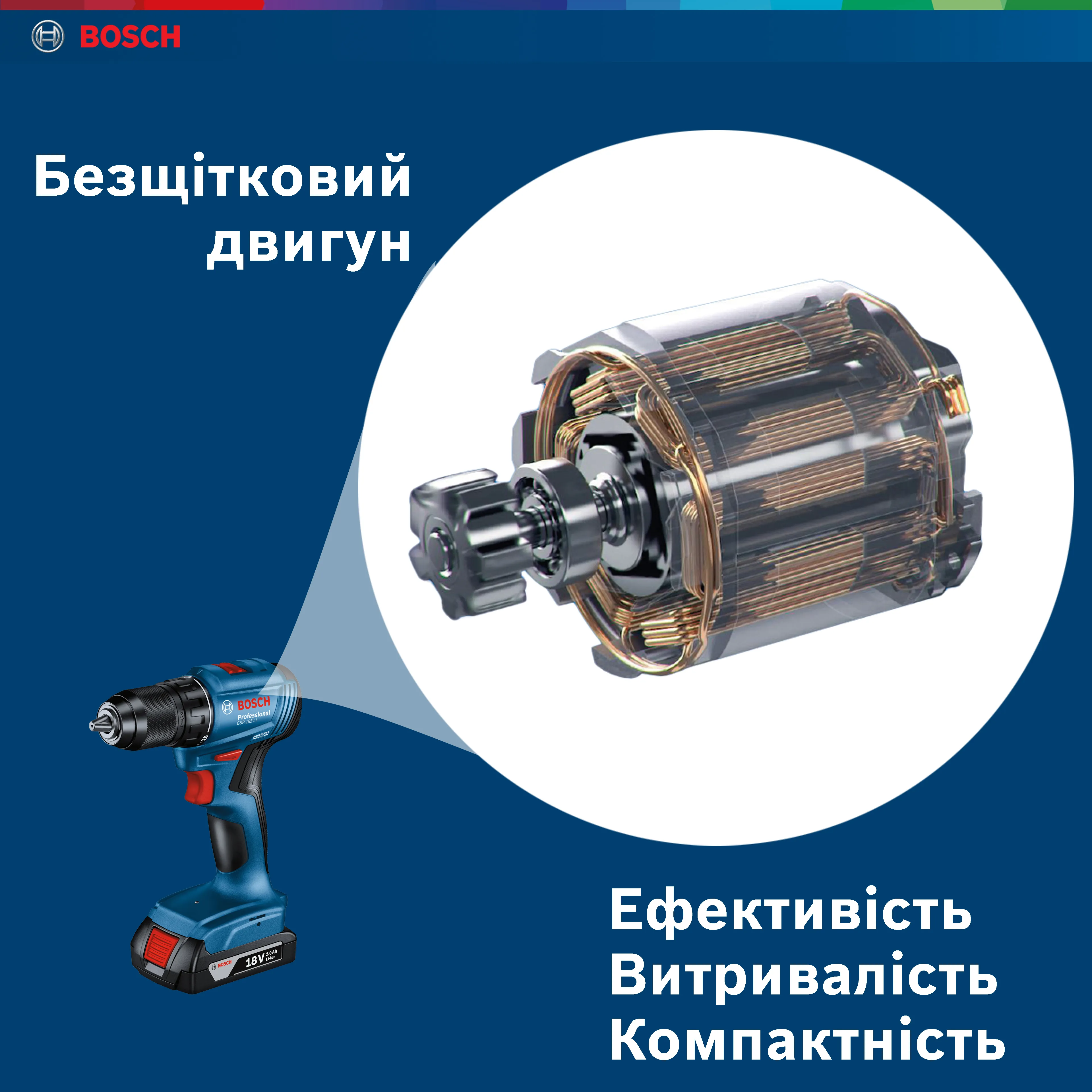 Безщітковий електромотор забезпечує тиху роботу, енергоефективність та мінімізує обслуговування. Без необхідності заміни щіток і частого чищення цей інструмент ідеально підходить для використання в різних умовах, включаючи запилені приміщення.