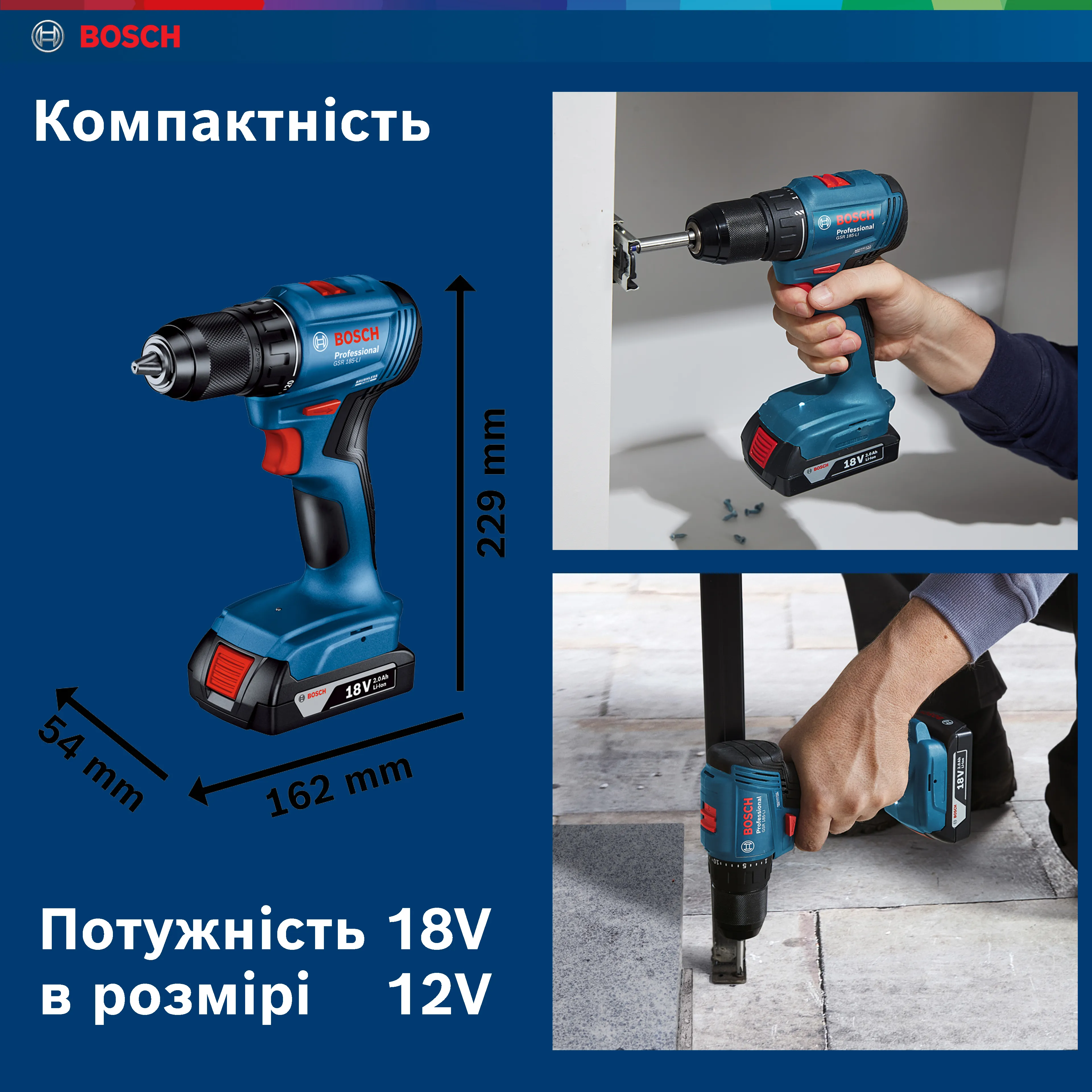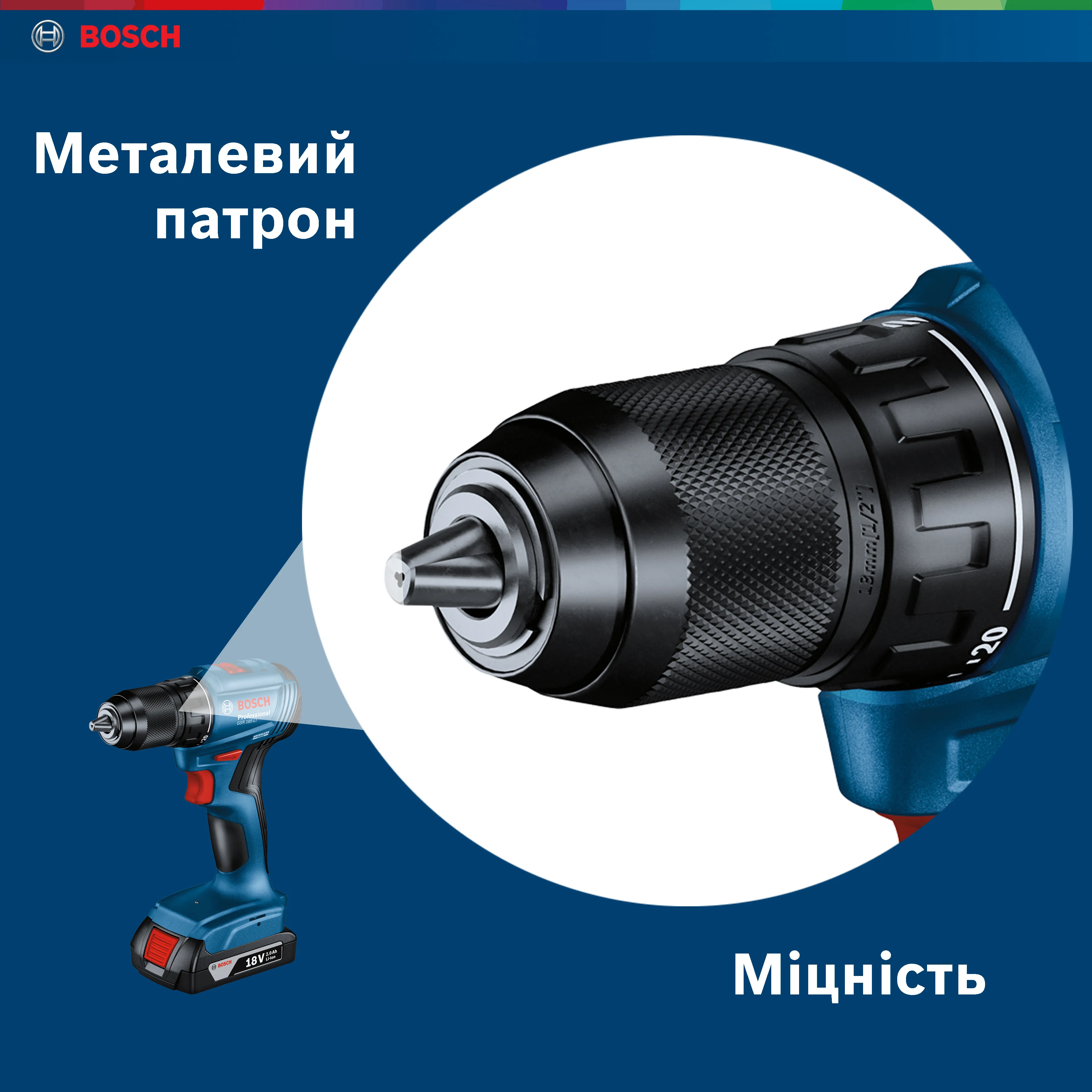З Bosch GSB 185-LI ви отримаєте не просто шуруповерт-дриль, а надійного партнера, який поєднує в собі міць, технологічну передовість та неймовірну простоту у використанні для максимальної продуктивності у ваших завданнях.
