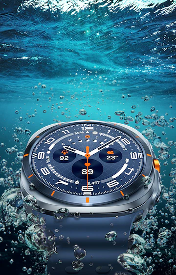 *Смартгодинник Galaxy Watch Ultra має водонепроникність відповідно до стандарту ISO 22810, що підтверджує його здатність витримувати занурення на глибину до 100 метрів протягом 10 хвилин. Випробування проводилося у воді з вмістом солі 5 % та рівнем хлору 4 мг/л. Крім того, пристрій має ступінь захисту IP68, підтверджену лабораторними випробуваннями: годинник витримує занурення у прісну воду на глибину до 1,5 метра тривалістю до 30 хвилин. Galaxy Watch Ultra не призначений для занурень у середовищах з високим тиском, зокрема для дайвінгу. Його можна безпечно використовувати під час поверхневих водних активностей – наприклад, для плавання в басейні або морі. Зверніть увагу, що водостійкість не є постійною характеристикою та може знижуватися з часом у результаті нормального зношування. Докладні рекомендації щодо догляду та умов експлуатації наведено в інструкції користувача. *Додаткові ремінці для годинника продаються окремо.