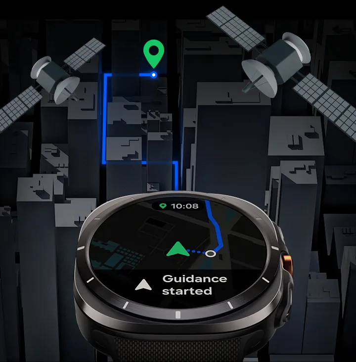 Смартгодинник Galaxy Watch Ultra оснащено найточнішим GPS серед усіх моделей серії Galaxy Watch – для стабільного позиціювання навіть у щільній міській забудові. Підтримка частотних діапазонів L1 і L5 забезпечує максимально точне визначення розташування.