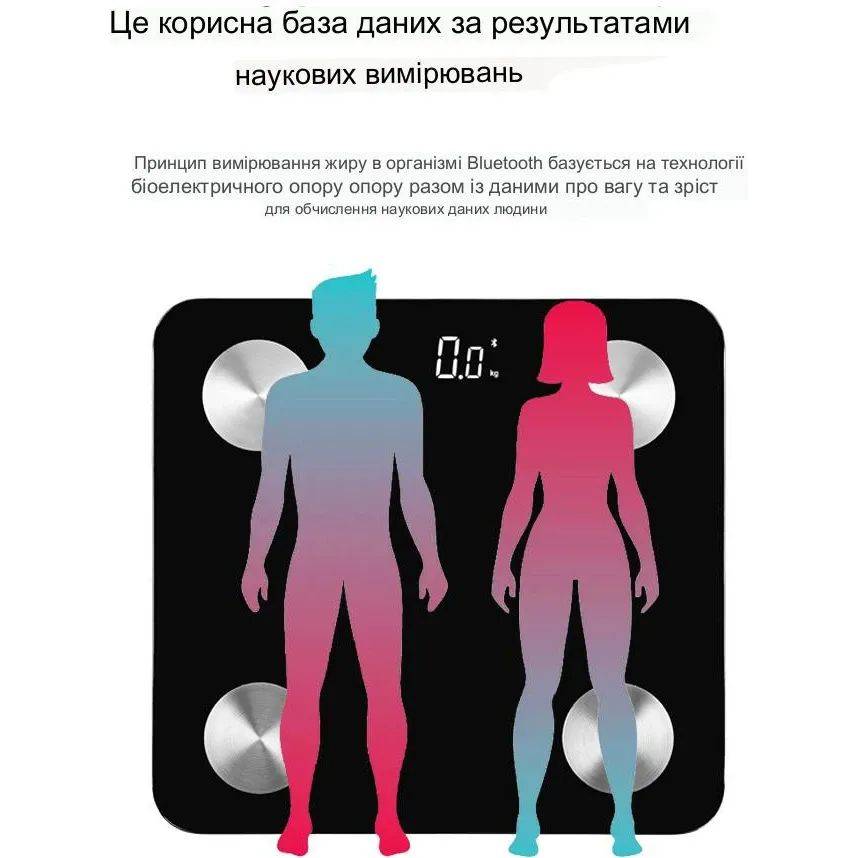 Хочете знати, чи спалюєте ви жир, набираєте м'язи або худнете, просто зменшуючи рідини у своєму тілі? Розумна шкала Scale one допоможе вам розібратися в цьому. Розумні ваги Scale One пропонують комплексний аналіз стану організму, що включає 13 ключових показників. Такі як вага, відсоток жиру в організмі та води, м'язова та кісткова маса, індекс маси тіла та інші показники здоров'я вашого тіла. Scale one Smart Scale синхронізує дані з мобільним додатком, дозволяючи відстежувати кожну зміну вашого тіла в будь-який час. Масштаб однієї розумної шкали стане відмінним помічником в досягненні поставлених цілей і плануванні здорового способу життя. З діагностичними вагами контролювати свої вагові та фітнес-параметри стало легко і просто! Ваги можна використовувати у ванній кімнаті, з додатком або без нього.