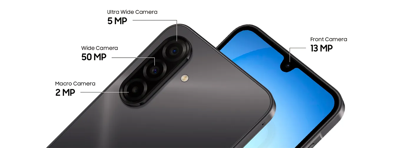 Потрійна система камер Galaxy A17 із ширококутною 50 МП, ультраширококутною 5 МП і макрокамерою 2 МП точно передає кожну сцену. Легко переходьте від панорамних пейзажів до крупних планів з яскравими кольорами та високою чіткістю, щоб зберегти найважливіші моменти життя.