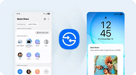 Використовуйте функцію Quick Share (Швидкий спільний доступ), щоб легко обмінюватися файлами між пристроями – як у межах екосистеми Galaxy, так і поза нею, включно з iOS та ПК.6