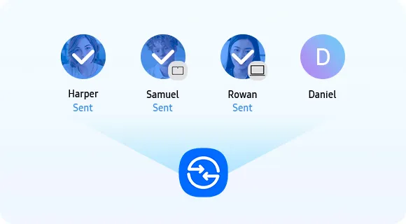 Легко обмінюйтеся файлами між пристроями за допомогою функції Швидкий спільний доступ на Galaxy A57 5G. Діліться необхідним на пристрої в мережі Galaxy або за її межами, включно з iOS та ПК. Під час обміну фотографіями ваш телефон використовує розширені рекомендації, щоб розпізнавати людей на фото та автоматично рекомендувати, з ким поділитися.11