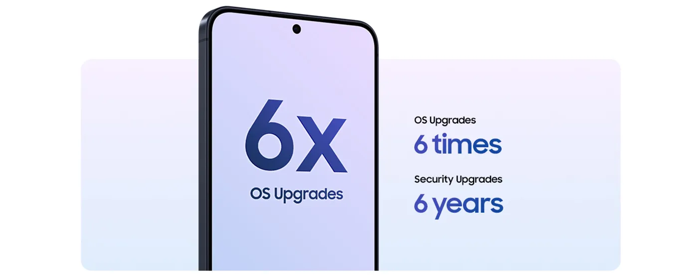 Забезпечте актуальність і безпеку вашого Galaxy A57 5G завдяки тривалій підтримці програмного забезпечення. Galaxy A57 5G підтримує до 6 оновлень ОС, тож ви можете відкрити для себе нові простіші способи творити, залишатися на зв'язку та працювати ефективніше завдяки злагодженій роботі функцій і сервісів. Крім того, ви отримуєте до 6 років оновлень безпеки, що допоможе надійно захистити ваші дані.1