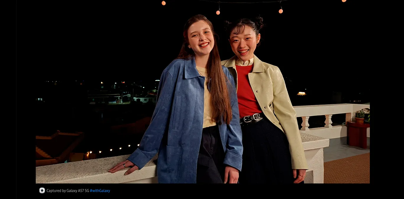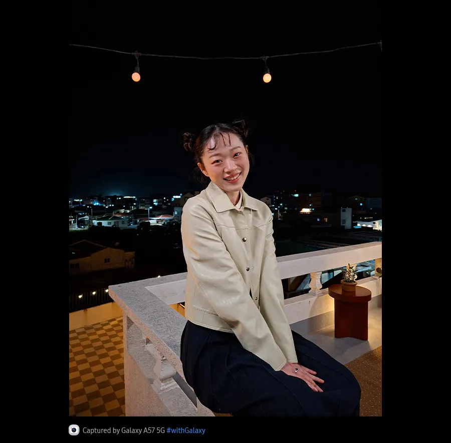 Підкорюйте ніч і фіксуйте незабутні моменти завдяки оптимізованій функції Нічної зйомки на Galaxy A57 5G. Ширококутна камера підтримує покращену обробку сигналів зображення (ISP) для швидшої обробки зображень, що значно зменшує кількість поглинутого шуму. Тож на нічних знімках ви можете бачити чіткіші деталі з меншим розмиттям. Сенсор камери Galaxy A57 5G також має пікселі розміром 1,0 мкм, які поглинають більше світла з навколишнього середовища для створення яскравіших і реалістичніших відео з низьким рівнем шуму в умовах слабкого освітлення.3