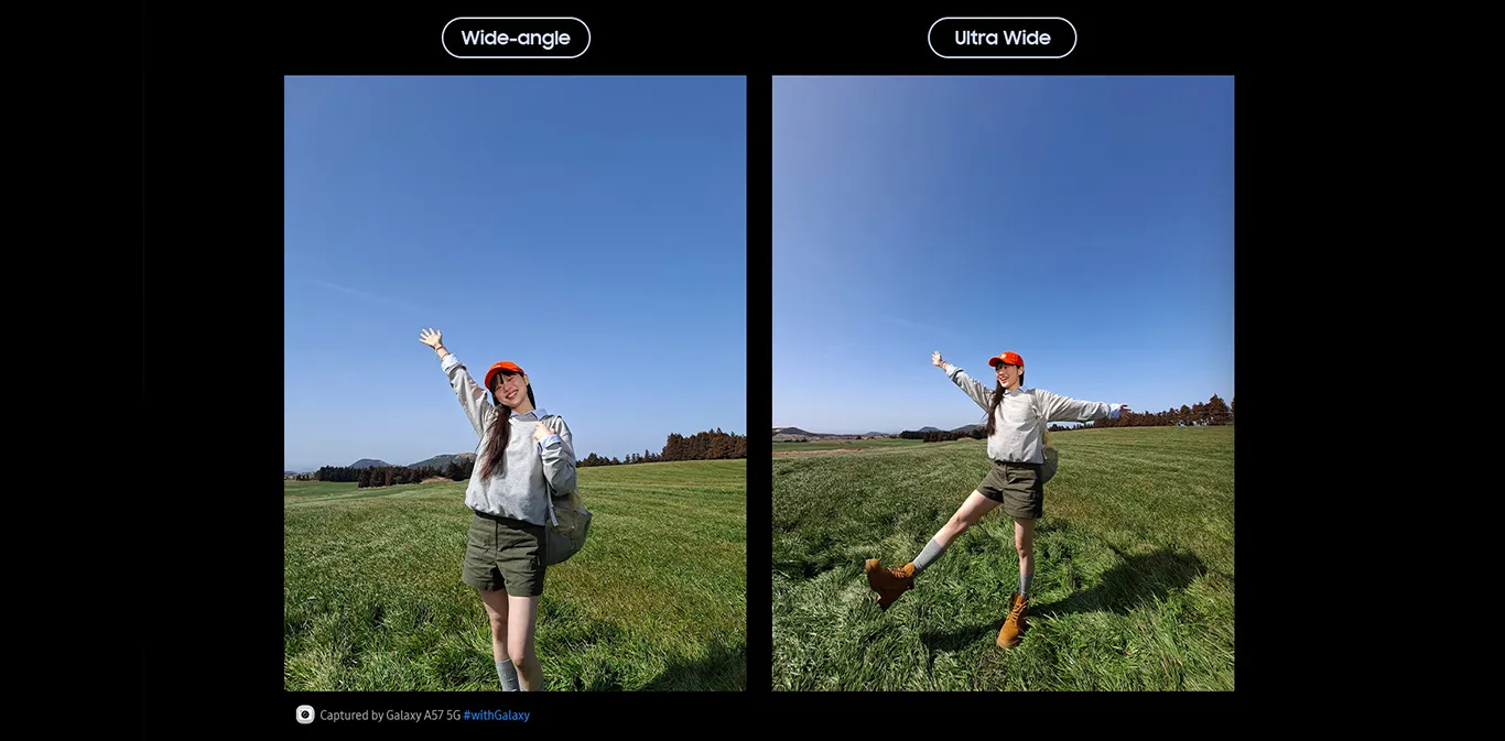 Знімайте портрети з покращеною деталізацією за допомогою Сегментації ШІ на Galaxy A57 5G. Система основної камери автоматично розпізнає фон, передній план і небо на портретних фото, а також автоматично покращує якість зображення шкіри, обличчя, волосся, трави тощо. А завдяки ультраширококутній камері Galaxy A57 5G ви можете захопити ширше поле зору та помістити більше світла в кадр.3