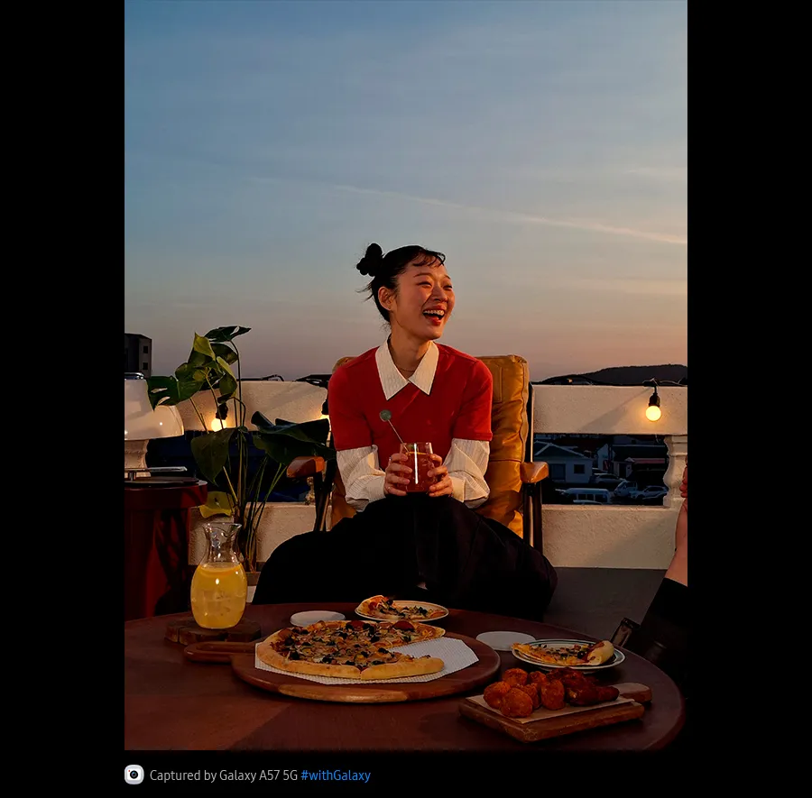 Незалежно від того, чи ведете ви пряму трансляцію, чи записуєте відео для свого наступного влогу – технологія Super HDR допоможе завжди виглядати якнайкраще. Фронтальна камера Galaxy A57 5G оптимізує селфі-відео, підвищуючи насиченість кольорів і контрастність. Фони відтворюються чітко та деталізовано, забезпечуючи щоразу відмінний результат.3