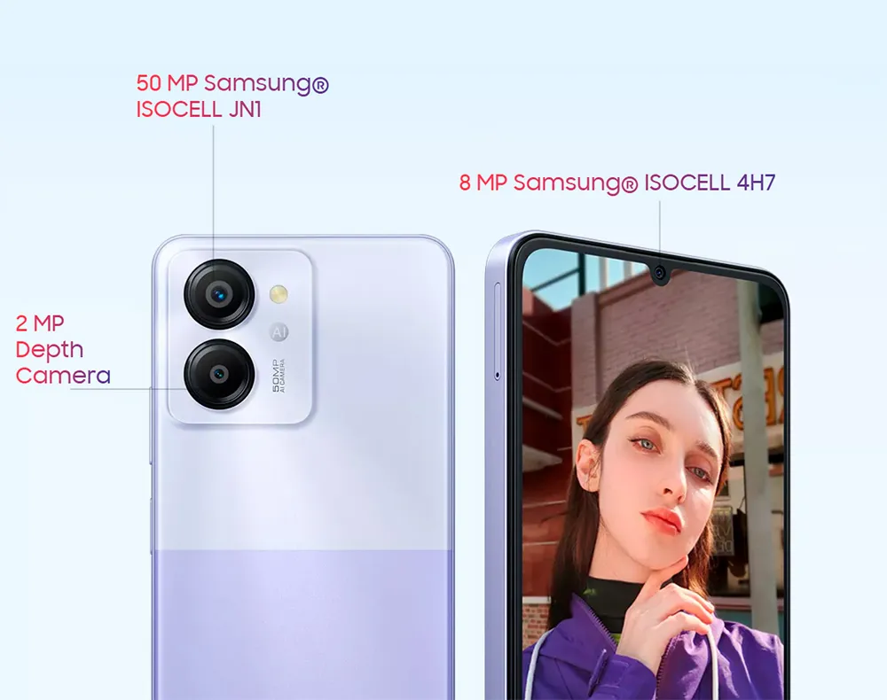 Смартфон Blackview COLOR 8 оснащений основною 50-мегапіксельною камерою Samsung® ISOCELL JN1, 8-мегапіксельною Samsung® ISOCELL 4H7 фронтальною камерою та надгучним динаміком Smart-К, який відтворює чистий та виразний звук. Технологія Tetrapixel з датчиком освітлення ISOCELL JN1 автоматично регулює параметри пікселів в залежності від умов освітлення, що покращує якість фотографії.