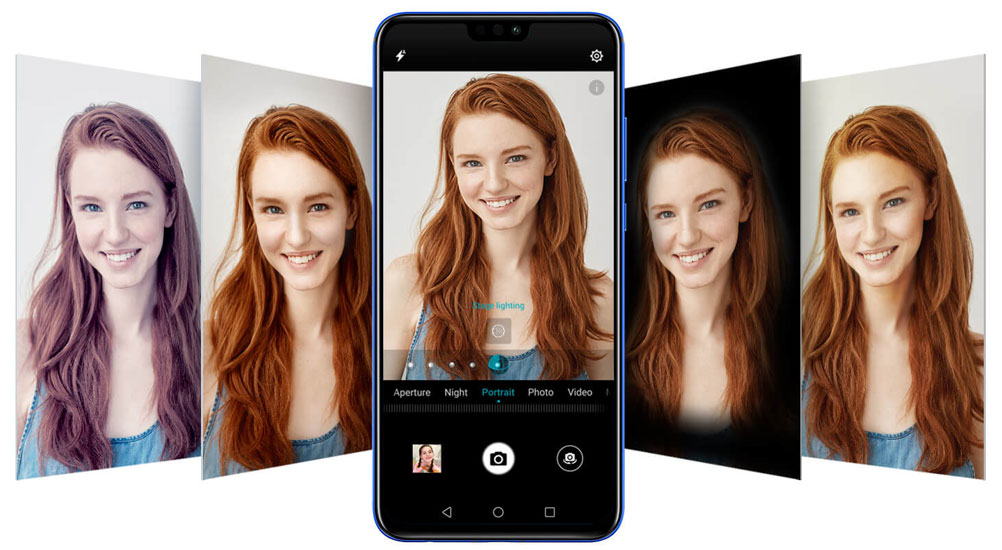 Крім функції мультикадрової витримки, що дозволяє уникнути засвіченого фону, об'єкти зйомки у режимі Портрет можна виділити за допомогою ефекту боке та сценаріїв освітлення. Алгоритми штучного інтелекту пропонують 4 варіанти студійного освітлення для портретної зйомки.