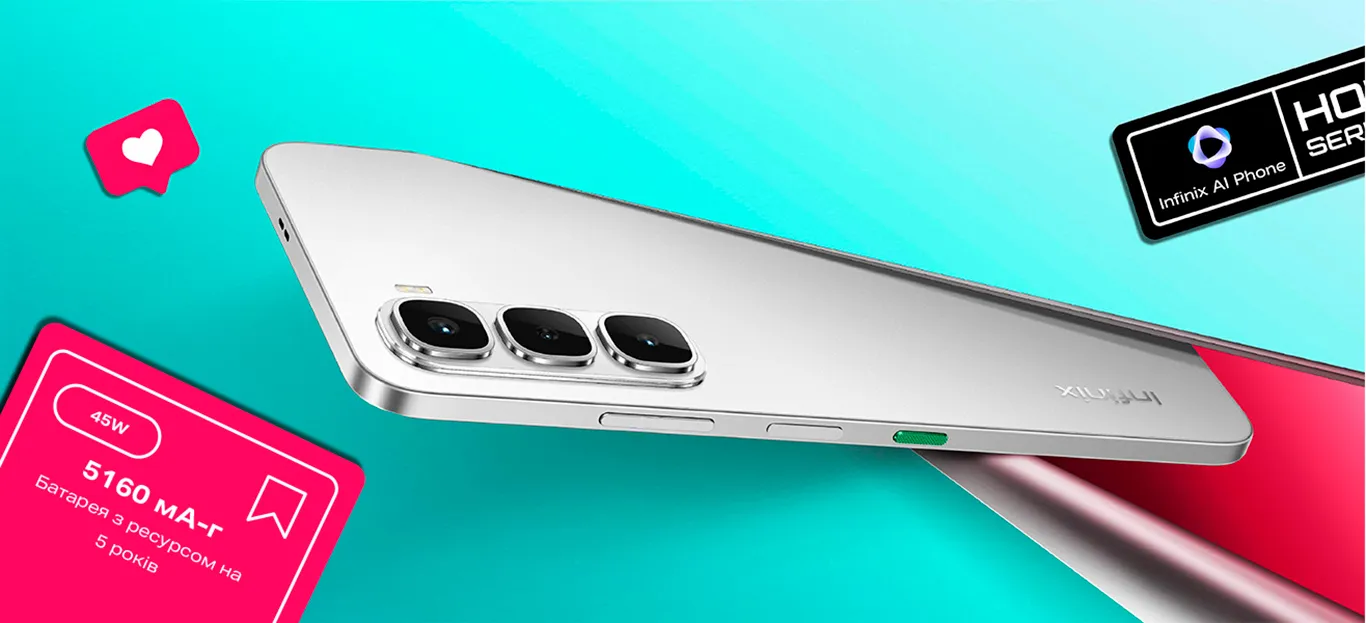 Infinix HOT 60i має стильний вигляд з яскравими кольоровими елементами — смартфон виглядає сучасно та свіжо, підкреслюючи вашу індивідуальність.