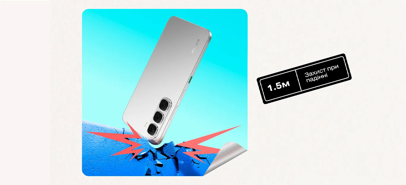 Смартфон створений для повсякденних викликів — завдяки посиленій конструкції з чотирикутним захистом він витримує падіння з висоти до 1,5 метра. Надійна міцність корпусу забезпечує довговічність, зберігаючи ультратонкий дизайн і комфорт у щоденному користуванні.