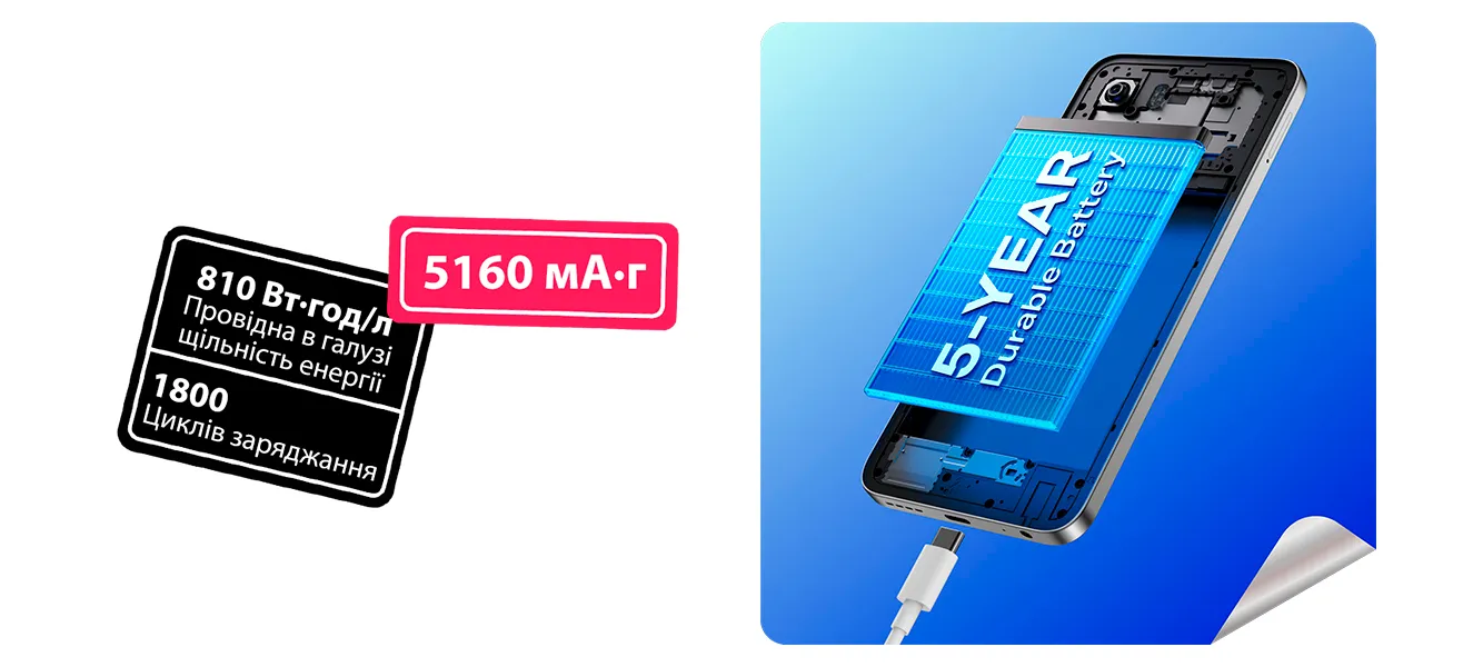 Надійна автономність щодня — батарея на 5160 мА·г із ресурсом до 1800 циклів заряджання забезпечує стабільну роботу протягом 5 років. А завдяки підтримці швидкої зарядки 45 Вт смартфон швидко повертається до роботи, навіть якщо час підзарядки обмежений.