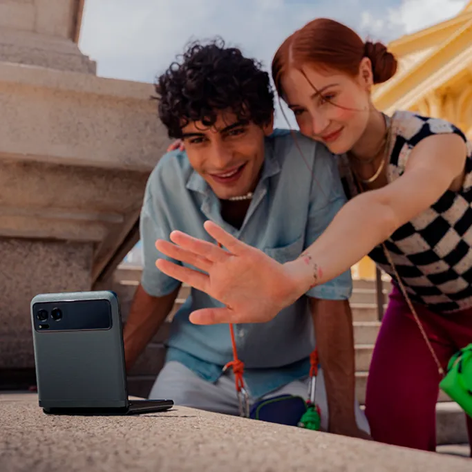 Знаходьте нові ракурси для інтерактивної творчості завдяки гнучкому телефону, який можна поставити на пласку поверхню.