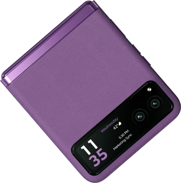 Не обтяжуйте себе – обирайте ультра компактний, легкий розкладний телефон. Отримуйте задоволення від дотику до покриття, зробленого з екологічної шкіри. Привертайте до себе увагу завдяки гаммі кольорів razr, що задають нові тренди.