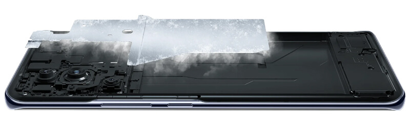 Щоб перегрів телефону не гальмував його роботу, його забезпечили ефективною системою охолодження, яка включає вакуумну камеру з нержавіючої сталі. Вона має загальну площу розсіювання тепла 2360мм², що допомагає знизити температуру ключових елементів та досягти стабільнішої роботи телефону під навантаженнями.