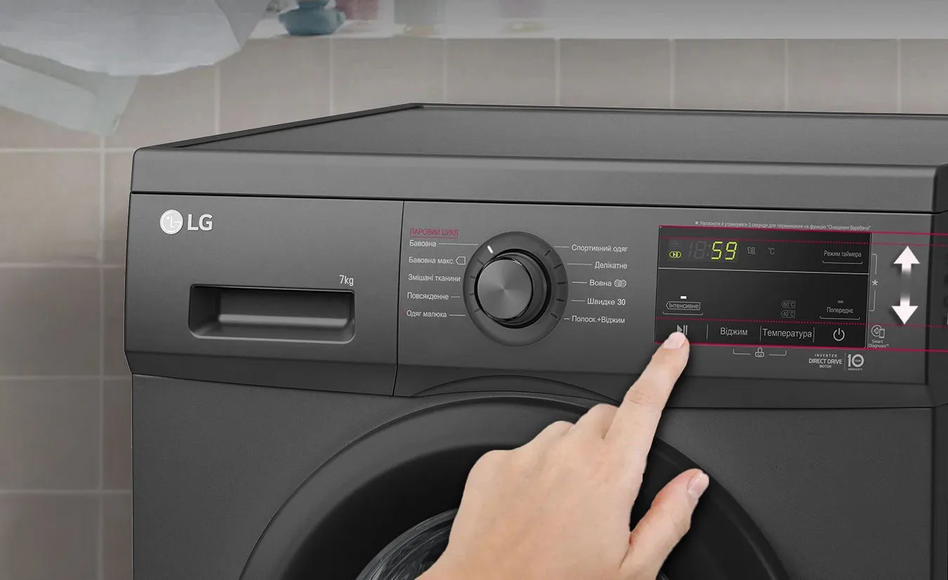 Полегшене керування пральною машиною LG досягається завдяки оновленій сенсорній панелі зі збільшеним розміром*, встановленій під оптимальним кутом для максимальної зручності користування.