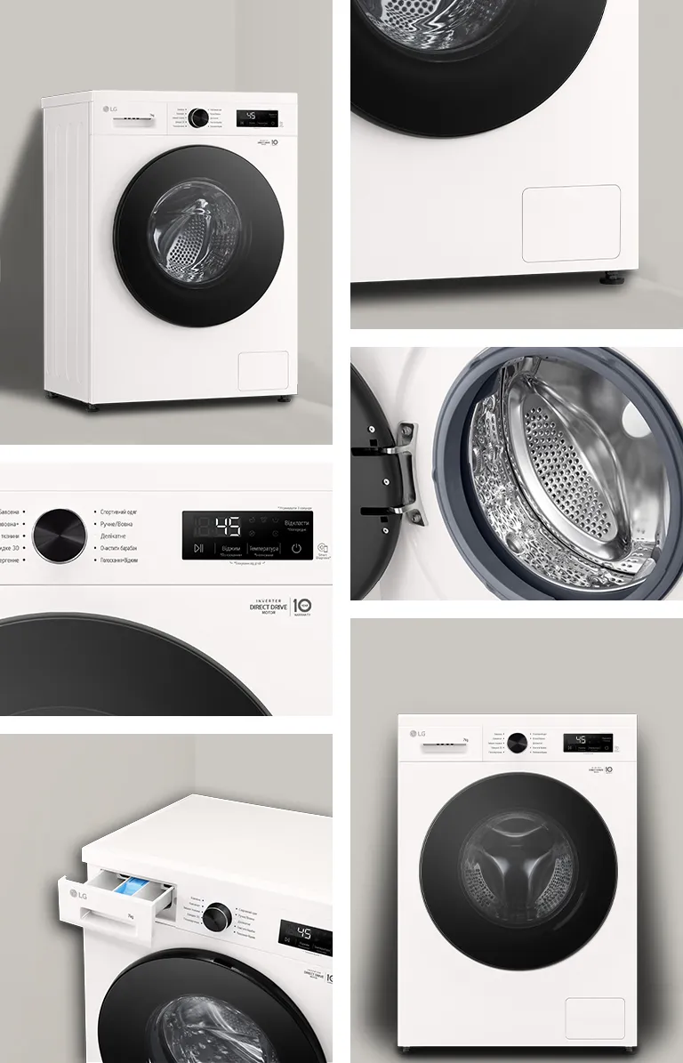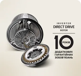 Компанія LG окрім повної гарантії на продукт терміном 12 місяців зобов’язується безкоштовно надавати певний перелік деталей для подальшої заміни. Для пральних машин LG ці зобов’язання поширюються на окремі деталі інверторного двигуна з прямим приводом із системою Inverter Direct Drive™*.