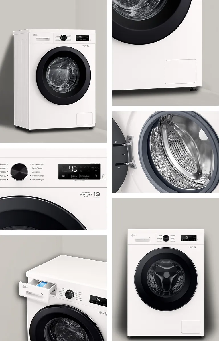 Компанія LG окрім повної гарантії на продукт терміном 12 місяців зобов’язується безкоштовно надавати певний перелік деталей для подальшої заміни. Для пральних машин LG ці зобов’язання поширюються на окремі деталі інверторного двигуна з прямим приводом із системою Inverter Direct Drive™*.