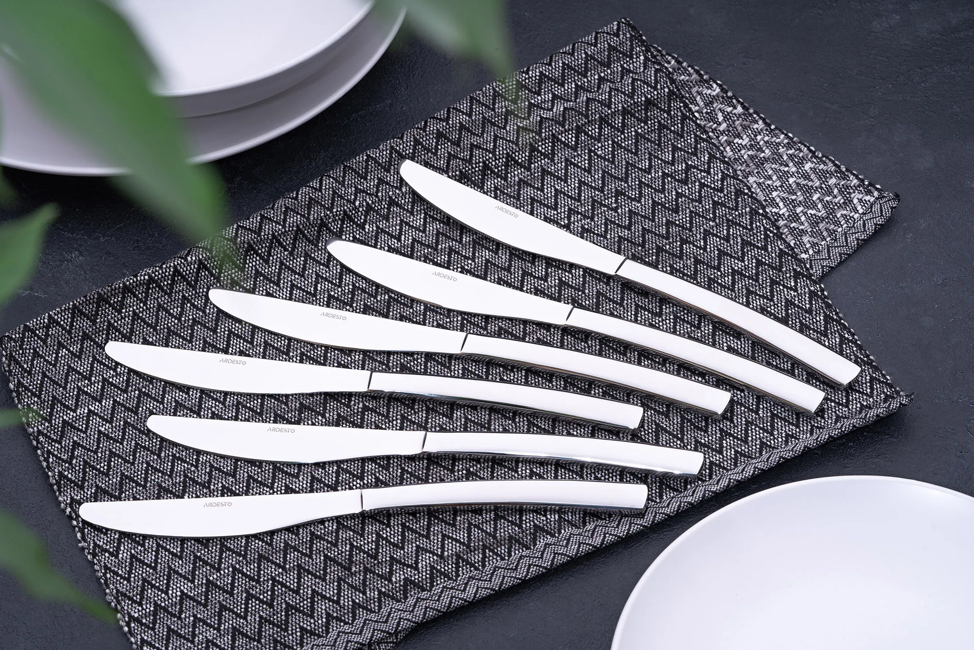 Столові ножі ARDESTO Black Mars Charm являють собою чудове поєднання вишуканого стилю і надійної функціональності, роблячи їх ідеальним вибором як для повсякденного використання, так і для особливих випадків. Незалежно від того, готуєте ви обід для сім'ї або влаштовуєте вечерю для гостей, ці ножі допоможуть вам створити неповторну атмосферу затишку і вишуканості на вашому столі.Набір із шести предметів забезпечує достатню кількість ножів для вашої сім'ї та гостей, даючи змогу насолоджуватися приємним обідом у компанії близьких. Виготовлені з високоякісної неіржавкої сталі, вони мають міцність, яка гарантує довгий термін служби вашому сервізу.