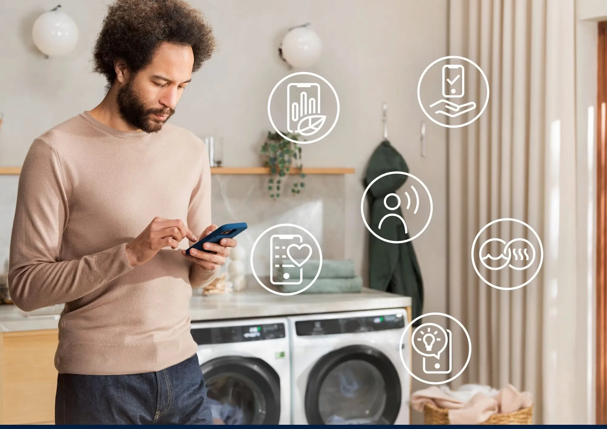 Підключіть прилад до додатка Electrolux, і ви зможете дистанційно керувати ним, переглядати поточний стан у режимі реального часу та персоналізовані поради щодо економії ресурсів. Підключіть пральну та сушильну машину, щоб заощаджувати час завдяки синхронізації додатків Connected+.