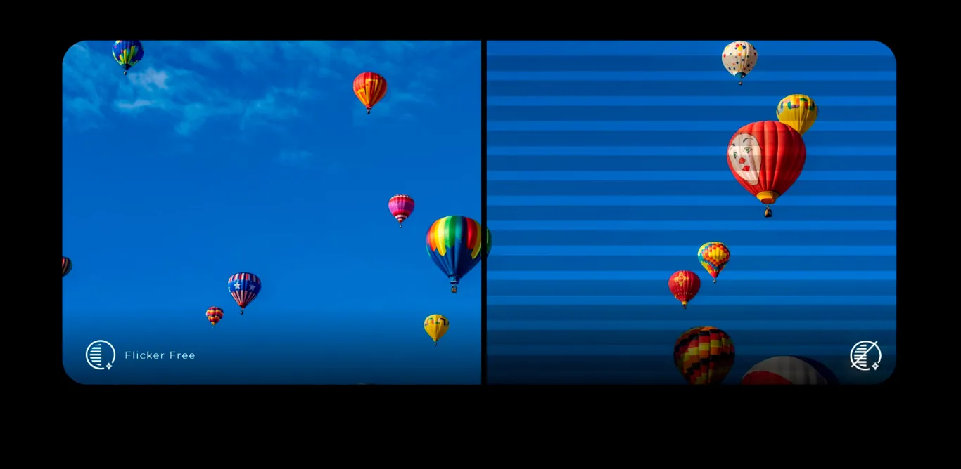 Завдяки технології Flicker Free екран не мерехтить і не втомлює зір, даючи можливість дивитися телевізор годинами поспіль без втоми очей і без шкідливих наслідків для зору.