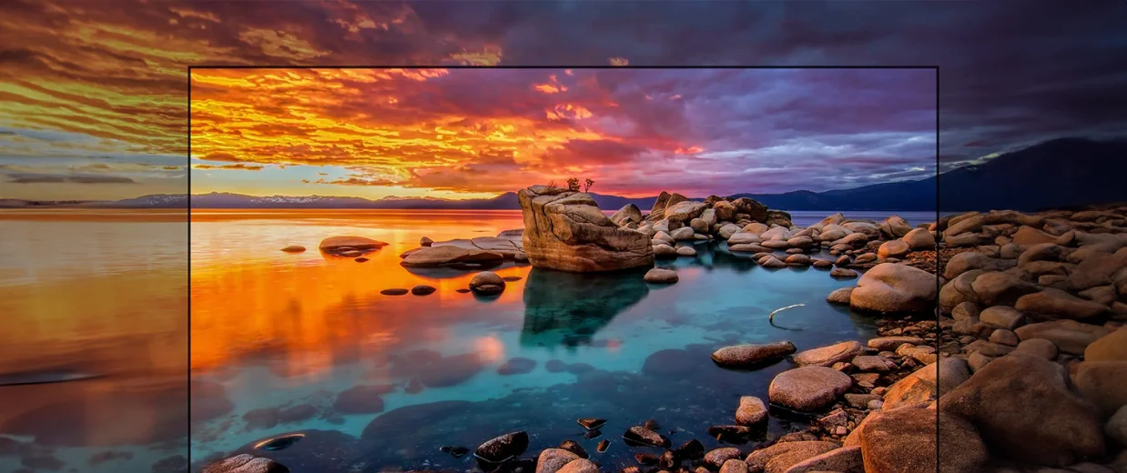 Перед вами телевізор, який може відтворити широкий спектр кольорів, включаючи до 90% відтінків гами за стандартом кольорового простору DCI-P3. Це подібно до того, як ви заглядаєте в калейдоскоп і спостерігаєте за світом кольорів.