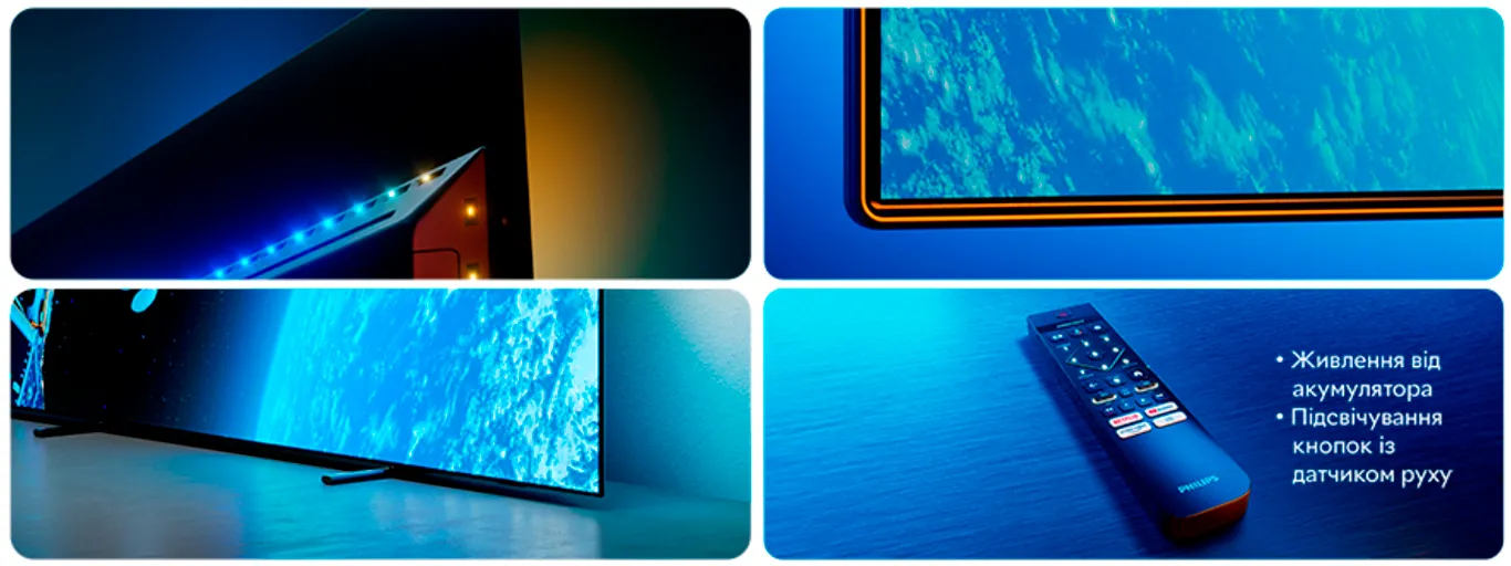 Телевізори з Ambilight — це єдині телевізори зі світлодіодним фоновим підсвічуванням позаду телевізора, яке реагує на зображення, яке ви переглядаєте, занурюючи вас у перегляд вражаючим ореолом різнокольорового світіння. Це технологія, що змінює перегляд!