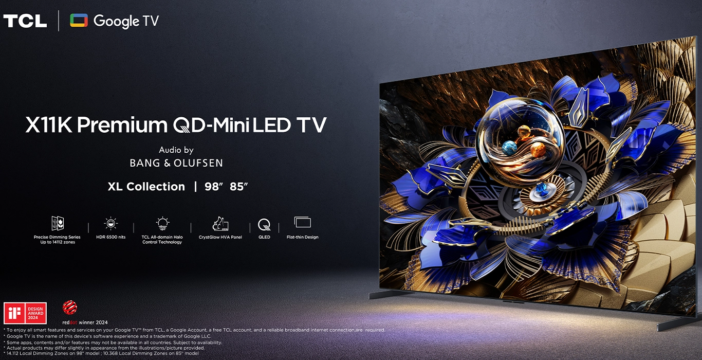 Преміальний TCL X11K QD-Mini LED з кількістю зон затемнення до 14 112 — це візуальний шедевр, що забезпечує неймовірно яскраві зображення з природними кольорами й надвисокою контрастністю. Він також відзначається вищою піковою яскравістю, ширшим колірним охопленням, більшим розміром екрана та довшим терміном служби, що робить його передовою технологією дисплеїв.