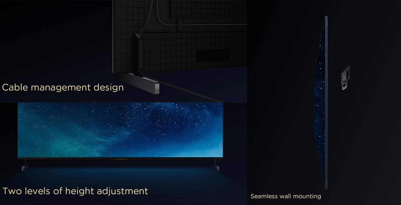 Без рамки спереду для більшого екрану і ще більшої насолоди від зображення. Ця концепція плоского тонкого дизайну використовує справжній метал, що робить її не лише елегантним витвором мистецтва, а й довговічним продуктом, який гармонійно впишеться у ваш простір. Моделі 98" та 85" постачаються зі стильним тонким настінним кріпленням у комплекті, що дозволяє легко закріпити цей шедевр на стіні. Вічний дизайн, що підкреслює та ідеально вписується у ваш житловий простір.